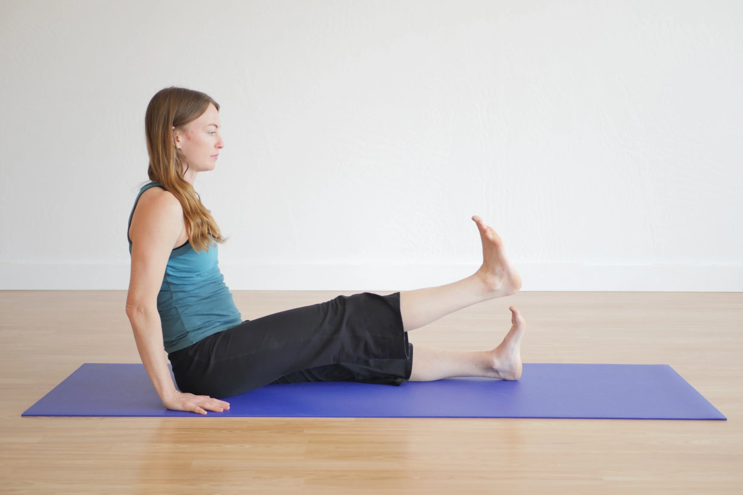 The hip flexors contract to lift the leg. This is active hip flexion, because you’re using muscular effort to bring the leg toward the torso. The core muscles are also engaged to support the spine and keep you from collapsing backward. When you lift the leg, the front of the hip is working. This is active hip flexion, and a great movement for building strength and control in the hip flexors, which are often underused, tight, and weak—especially in people who sit a lot.